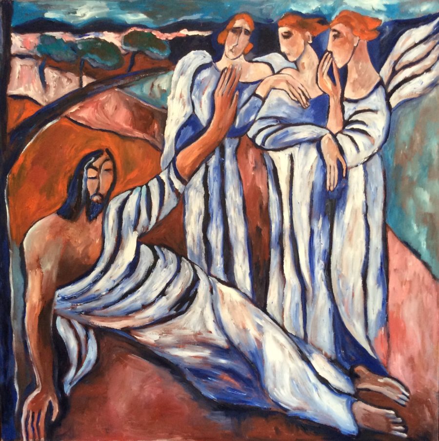 Christ in Olive Garden with three Angels / Gethsemane