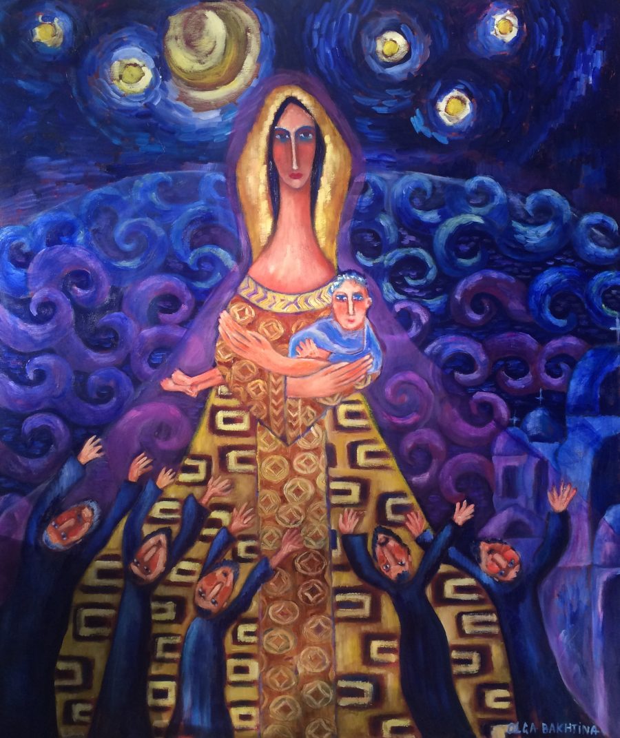 Madonna and child crossing the sea