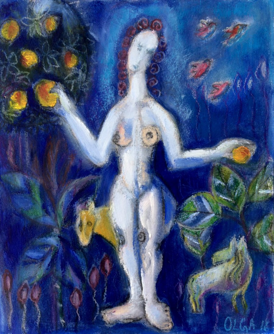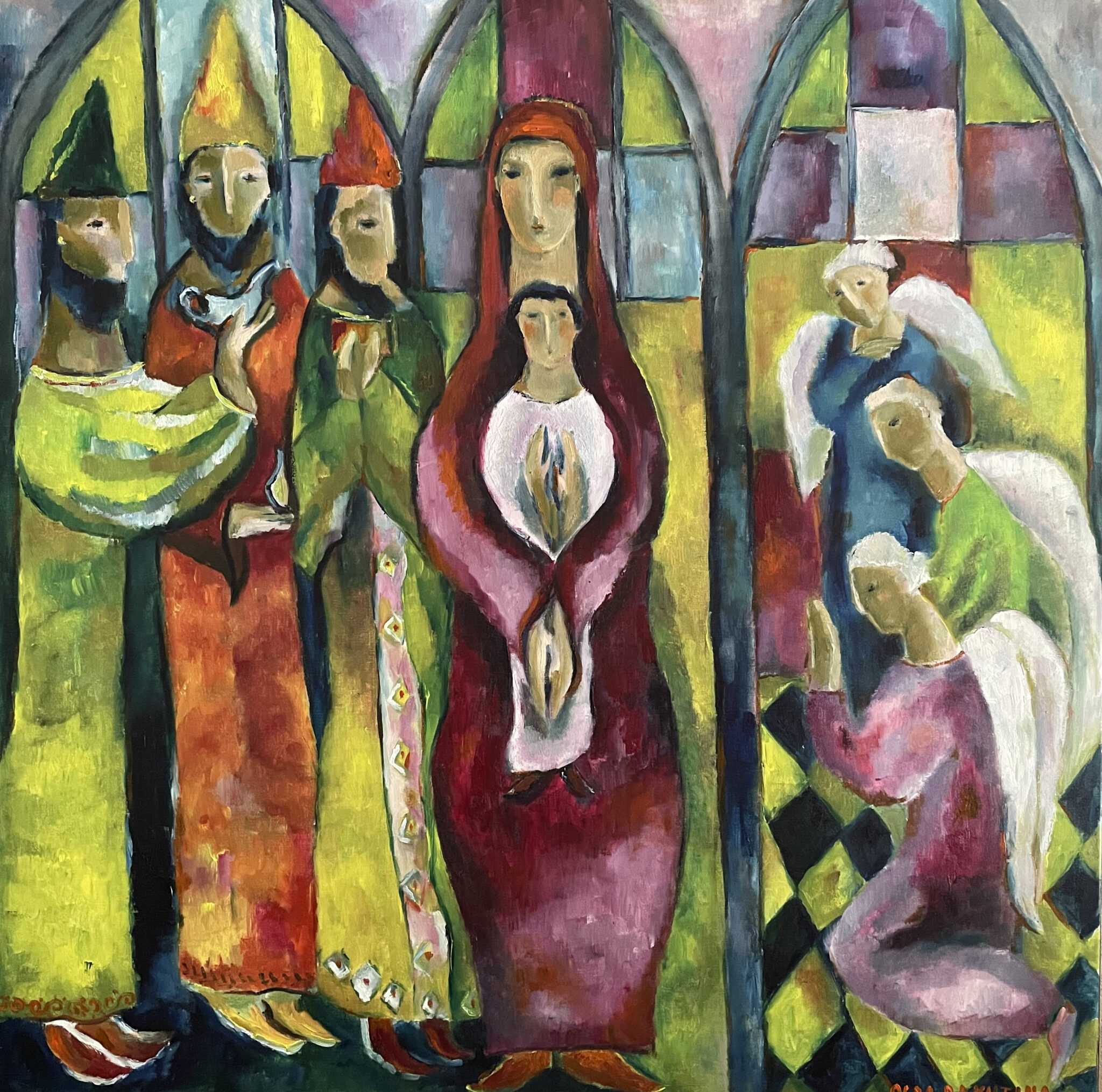 I still work on this series and find it a special experience. It’s difficult to describe, but this is possibly how icon painters felt throughout history. I admire and find lots of inspiration in ancient Christianity art – especially Byzantine icons and early European frescoes, with their simplified forms and clear colours.
